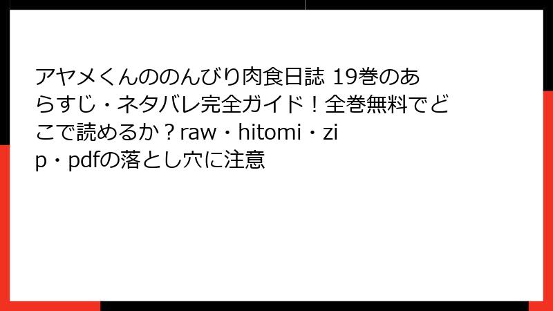 こんにちは、漫画ファン必見の皆さん! 今日は、raw、hitomi、zip、pdf、漫画バンクなどの海賊版サイトで『アヤメくんののんびり肉食日誌』のような人気コミックを読むことのリスクについて、深く掘り下げてお話しします。「無料で読めるなんて魅力的!」と思う気持ちはわかりますが、そんな甘い誘惑の裏側には、法的・セキュリティ・経済的な落とし穴が無数に潜んでいます。この記事では、具体的なリスクを分類し、なぜ絶対に避けるべきかをデータや事例を交えて詳しく解説。読み終わったら、正規ルートで楽しむ大切さがきっと実感できるはずです。では、早速本題へ!