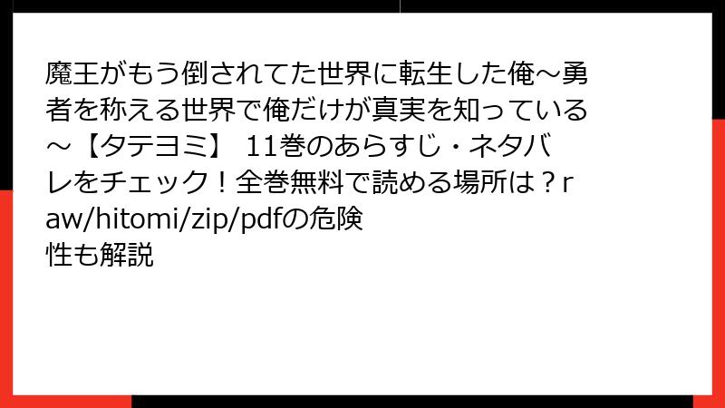 魔王がもう倒されてた世界に転生した俺~勇者を称える世界で俺だけが真実を知っている~【タテヨミ】 11巻のあらすじ・ネタバレをチェック!全巻無料で読める場所は?raw/hitomi/zip/pdfの危険性も解説