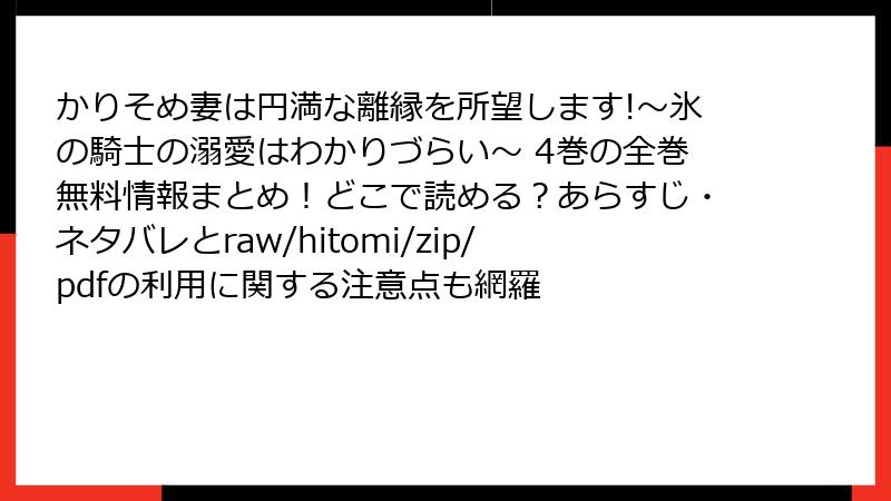 こんにちは、マンガ大好きブロガーです! 今回は、2025年5月2日発売の『かりそめ妻は円満な離縁を所望します!~氷の騎士の溺愛はわかりづらい~』4巻のネタバレをたっぷりお届けします。このコミカライズは、原作小説の切ないロマンスとコミカルな要素を絶妙に描き、ファンを虜にしています。4巻は、フレイヤとローガンの関係が大きく動き、過去の秘密や新たな試練が明らかに! 以下、ネタバレ全開でストーリーを詳細に解説しますので、未読の方はご注意を。物語の核心に迫りつつ、キャラクターの心情や見どころも掘り下げます。さっそく、ブログ形式で紐解いていきましょう!