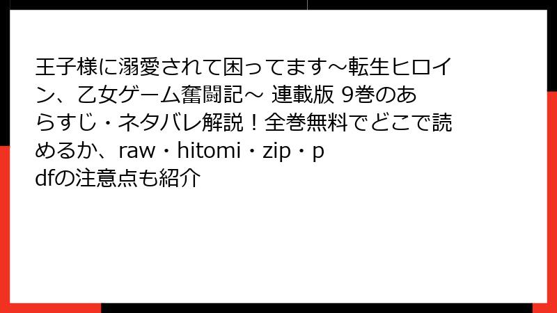 王子様に溺愛されて困ってます~転生ヒロイン、乙女ゲーム奮闘記~ 連載版 9巻のあらすじ・ネタバレ解説!全巻無料でどこで読めるか、raw・hitomi・zip・pdfの注意点も紹介