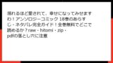 - 図書館やレンタル:地域の図書館や漫画レンタルサービスを活用するのも、合法的で安全な選択肢です。