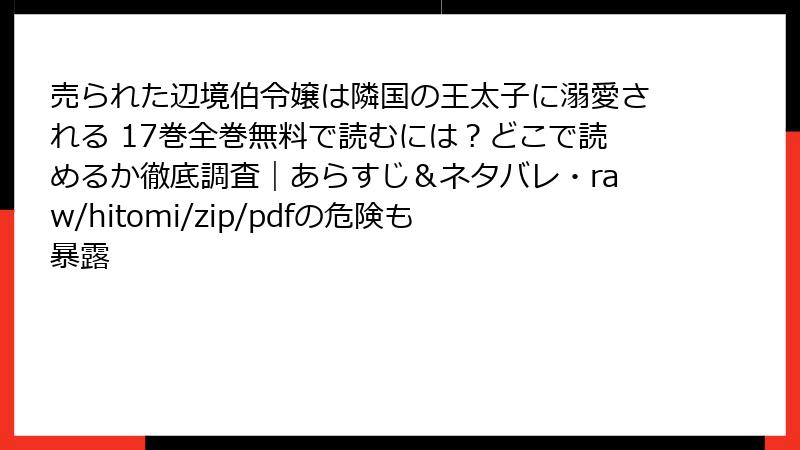 売られた辺境伯令嬢は隣国の王太子に溺愛される 17巻全巻無料で読むには?どこで読めるか徹底調査|あらすじ&ネタバレ・raw/hitomi/zip/pdfの危険も暴露