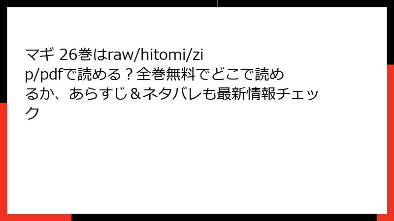 『マギ』26巻は、煌帝国編の熱いクライマックスが詰まったファン必読の一冊。電子書籍で手軽に楽しみたい方のために、指定された人気サービス(コミックシーモア、ブックライブ、めちゃコミック、ebookjapan、Renta!、まんが王国、ピッコマ、LINEマンガ)での配信状況を詳しくまとめました。2025年10月現在の最新情報に基づき、各サービスの特徴やお得ポイントも交えて解説。試し読み可能か、購入・レンタル形式かもチェック! 合法的にサクサク読んで、作者の大高忍先生を応援しましょう。