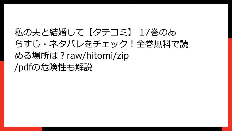 raw/hitomi/zip/pdf/漫画バンクなどの海賊版サイトは、法的罰則、ウイルス被害、倫理的後悔の三重苦。2025年の今、取り締まり強化で「後悔の連続」が増えています。『私の夫と結婚して【タテヨミ】』のドキドキを安全に味わうなら、正規ルートを選びましょう。作者の情熱を支えつつ、自分も守れるwin-winです! 皆さんの漫画ライフが豊かになることを祈って。コメントで「私はこうして正規で読んでるよ」とシェアしてくださいね♪