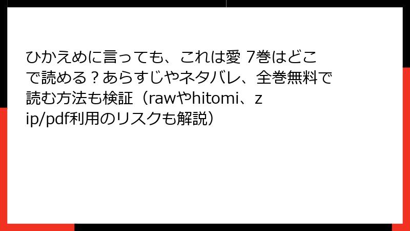 raw/hitomi/zip/pdf/漫画バンクのリスクは、法的罰則からセキュリティ脅威、倫理的ジレンマまで多岐にわたり、無料の代償はあまりに大きい。『ひかえめに言っても、これは愛』のような名作を、心から楽しむなら、正規の電子書籍サービスを。無料試し読みやセールが充実しており、作者を応援できる一石二鳥です。皆さんの安全な読書ライフを祈っています! コメントで、あなたの体験談やオススメの合法サイトをシェアしてくださいね。