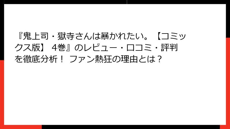 『鬼上司・獄寺さんは暴かれたい。【コミックス版】 4巻』のレビュー・口コミ・評判を徹底分析! ファン熱狂の理由とは?