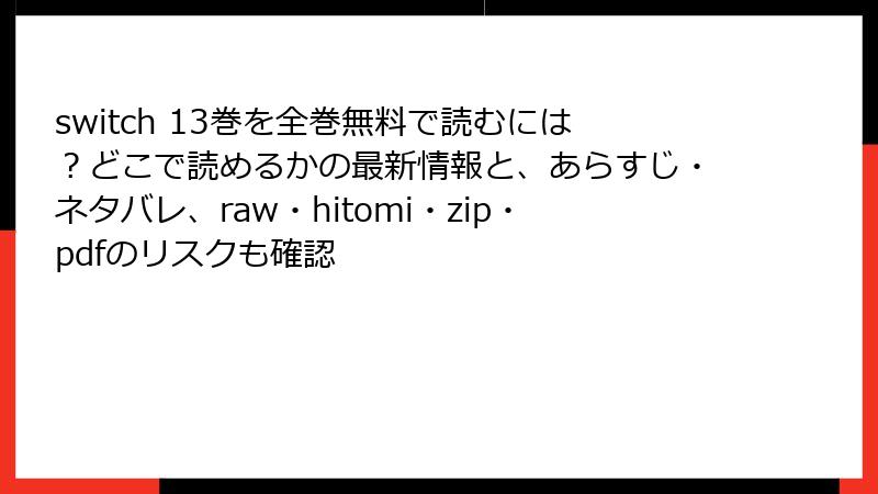 海賊版サイトのリスクは、法的制裁からデバイス破壊、業界崩壊まで多岐にわたり、決して「無料」の価値はありません。代わりに、ピッコマやebookjapanなどの合法サービスを活用しましょう。初回無料トライアルやセールで『スイッチ』全巻を安く楽しめ、安全・高画質が保証されます。ブログ管理人として、強くおすすめ! 皆さんの体験談やおすすめ正規アプリ、コメントでシェアしてくださいね。次回は合法漫画の隠れた名作レビューをお届けします♪