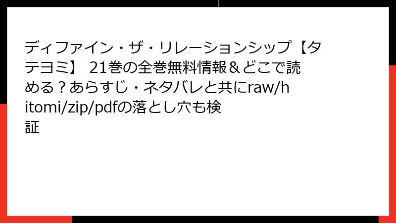 『ディファイン・ザ・リレーションシップ【タテヨミ】』の感動を、安全に共有しましょう。あなたのリスキー体験やおすすめサービスを、コメントで教えてください! 次回は正規サイトの活用術を深掘り予定です。