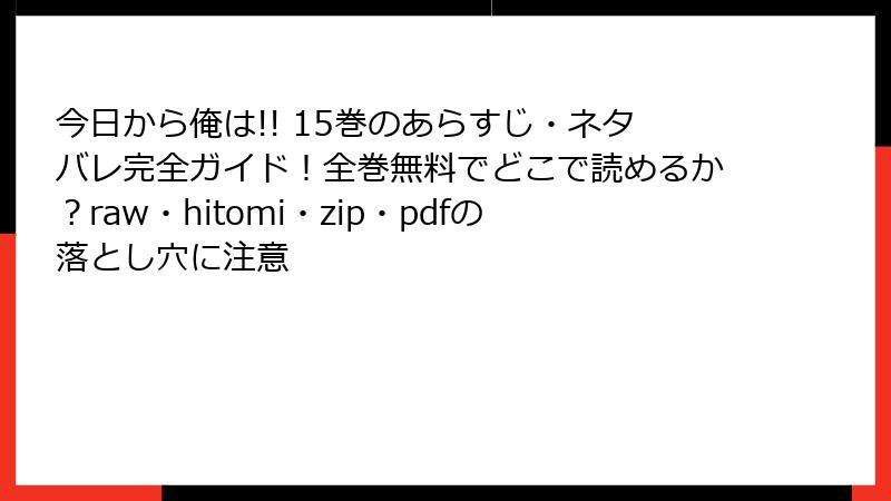 漫画好きの皆さん、最新巻を待ちきれずrawやhitomi、zip/pdfファイル、漫画バンクなどの海賊版サイトに手を出したことはありませんか? 『今日から俺は!!』のような名作を無料で読める誘惑は強いですが、2025年現在、これらのサイトは法的・セキュリティ・経済的な「罠」だらけ。利用者の被害事例が急増しており、軽い気持ちでアクセスすると取り返しのつかない事態に陥る可能性大です。この記事では、海賊版サイトのリスクを多角的に深掘り。なぜ正規ルートを選ぶべきか、具体例を交えて読み応え満点でお届けします。未読の漫画ファン必見! まずは深呼吸して、正しい知識を身につけましょう。