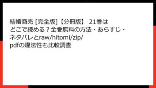女性マンガ 結婚商売 [完全版]【分冊版】 21巻はどこで読める?全巻無料の方法・あらすじ・ネタバレとraw/hitomi/zip/pdfの違法性も比較調査