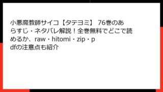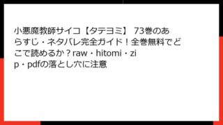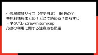 小悪魔教師サイコ【タテヨミ】 小悪魔教師サイコ【タテヨミ】 90巻はどこで読める?あらすじやネタバレ、全巻無料で読む方法も検証(rawやhitomi、zip/pdf利用のリスクも解説)