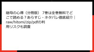 女性マンガ 継母の心得(分冊版) 7巻は全巻無料でどこで読める?あらすじ・ネタバレ徹底紹介|raw/hitomi/zip/pdfの利用リスクも調査