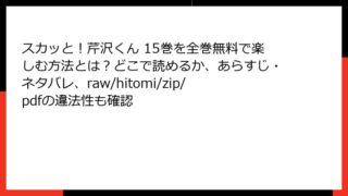 スカッと!芹沢くん スカッと!芹沢くん 24巻を全巻無料で読むには?どこで読めるかの最新情報と、あらすじ・ネタバレ、raw・hitomi・zip・pdfのリスクも確認