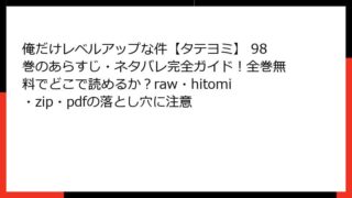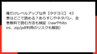 俺だけレベルアップな件【タテヨミ】 俺だけレベルアップな件【タテヨミ】 43巻はどこで読める?あらすじやネタバレ、全巻無料で読む方法も検証(rawやhitomi、zip/pdf利用のリスクも解説)