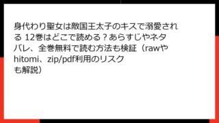 少女マンガ 身代わり聖女は敵国王太子のキスで溺愛される 12巻はどこで読める?あらすじやネタバレ、全巻無料で読む方法も検証(rawやhitomi、zip/pdf利用のリスクも解説)