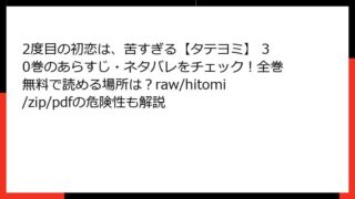 2度目の初恋は、苦すぎる【タテヨミ】 2度目の初恋は、苦すぎる【タテヨミ】 30巻のあらすじ・ネタバレをチェック!全巻無料で読める場所は?raw/hitomi/zip/pdfの危険性も解説