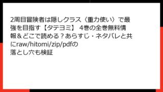 2周目冒険者は隠しクラス〈重力使い〉で最強を目指す【タテヨミ】 2周目冒険者は隠しクラス〈重力使い〉で最強を目指す【タテヨミ】 4巻の全巻無料情報&どこで読める?あらすじ・ネタバレと共にraw/hitomi/zip/pdfの落とし穴も検証