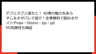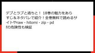 デブとラブと過ちと! 40巻:記憶喪失のポジティブガールが巻き起こす、恋と過ちのドタバタ劇みなさん、こんにちは! 漫画大好きブロガーのあやかです。今日は、ままかり先生の大人気ラブコメディ『デブとラブと過ちと!』の40巻について、詳しくあらす...