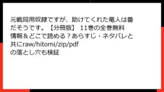 元戦闘用奴隷ですが、助けてくれた竜人は番だそうです。【分冊版】 元戦闘用奴隷ですが、助けてくれた竜人は番だそうです。【分冊版】 6巻を全巻無料で読むには?どこで読めるかの最新情報と、あらすじ・ネタバレ、raw・hitomi・zip・pdfのリスクも確認