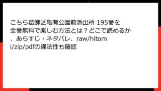 こちら葛飾区亀有公園前派出所 こちら葛飾区亀有公園前派出所 195巻を全巻無料で楽しむ方法とは?どこで読めるか、あらすじ・ネタバレ、raw/hitomi/zip/pdfの違法性も確認