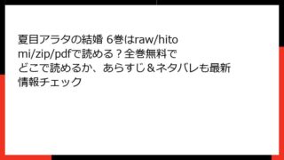夏目アラタの結婚 夏目アラタの結婚 6巻はraw/hitomi/zip/pdfで読める?全巻無料でどこで読めるか、あらすじ&ネタバレも最新情報チェック