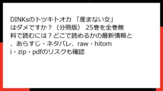 DINKsのトツキトオカ 「産まない女」はダメですか?(分冊版) DINKsのトツキトオカ 「産まない女」はダメですか?(分冊版) 25巻を全巻無料で読むには?どこで読めるかの最新情報と、あらすじ・ネタバレ、raw・hitomi・zip・pdfのリスクも確認