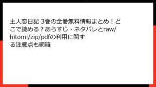 主人恋日記 主人恋日記 3巻の全巻無料情報まとめ!どこで読める?あらすじ・ネタバレとraw/hitomi/zip/pdfの利用に関する注意点も網羅