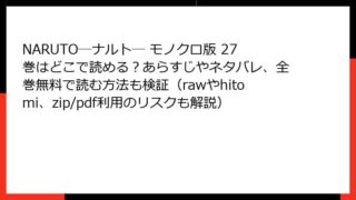 NARUTO―ナルト― モノクロ版 NARUTO―ナルト― モノクロ版 27巻はどこで読める?あらすじやネタバレ、全巻無料で読む方法も検証(rawやhitomi、zip/pdf利用のリスクも解説)