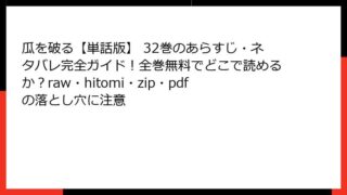 瓜を破る【単話版】58巻:現代女性の心の葛藤と新たな一歩板倉梓の人気コミック『瓜を破る』は、30代の女性たちのリアルな恋愛と性に対する悩みを繊細に描いた現代の冒険譚として、多くの読者を魅了しています。この作品は、主人公・香坂まい子を中心に、...