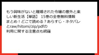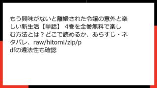 もう興味がないと離婚された令嬢の意外と楽しい新生活【単話】 もう興味がないと離婚された令嬢の意外と楽しい新生活【単話】 4巻を全巻無料で楽しむ方法とは?どこで読めるか、あらすじ・ネタバレ、raw/hitomi/zip/pdfの違法性も確認
