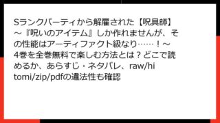 Sランクパーティから解雇された【呪具師】~『呪いのアイテム』しか作れませんが、その性能はアーティファクト級なり……!~ Sランクパーティから解雇された【呪具師】~『呪いのアイテム』しか作れませんが、その性能はアーティファクト級なり……!~ 7巻を無料で読む方法は?あらすじ&ネタバレ付きで紹介|raw/hitomi/zip/pdfの違法性やウイルス被害にも注意