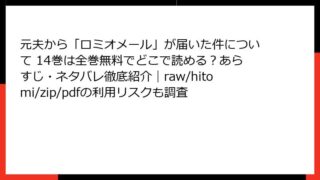 元夫から「ロミオメール」が届いた件について 元夫から「ロミオメール」が届いた件について 5巻のあらすじ・ネタバレをチェック!全巻無料で読める場所は?raw/hitomi/zip/pdfの危険性も解説