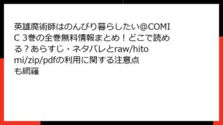 英雄魔術師はのんびり暮らしたい@COMIC 英雄魔術師はのんびり暮らしたい@COMIC 3巻の全巻無料情報まとめ!どこで読める?あらすじ・ネタバレとraw/hitomi/zip/pdfの利用に関する注意点も網羅