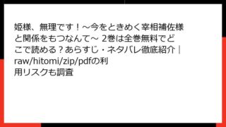 姫様、無理です!~今をときめく宰相補佐様と関係をもつなんて~ 姫様、無理です!~今をときめく宰相補佐様と関係をもつなんて~ 2巻は全巻無料でどこで読める?あらすじ・ネタバレ徹底紹介|raw/hitomi/zip/pdfの利用リスクも調査