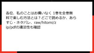 各位、私のことはお構いなく 各位、私のことはお構いなく 1巻を全巻無料で楽しむ方法とは?どこで読めるか、あらすじ・ネタバレ、raw/hitomi/zip/pdfの違法性も確認 『各位、私のことはお構いなく』1巻:自分らしく生きる勇気を与えてくれる、心温まるスカッとストーリーこんにちは、漫画大好きブロガーのあかりです! 今日のブログでは、2024年にめちゃコミックで独占先行配信がスタートした話題作『各位、私のことは... 2025.10.03 各位、私のことはお構いなく女性マンガ