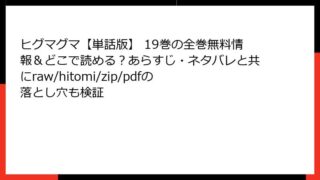 ヒグマグマ【単話版】 ヒグマグマ【単話版】 19巻の全巻無料情報&どこで読める?あらすじ・ネタバレと共にraw/hitomi/zip/pdfの落とし穴も検証 ヒグマグマ【単話版】19巻:超巨熊の脅威が極まる恐怖の章こんにちは、ホラー漫画好きのブロガーです。今日は、奥谷通教先生の傑作サバイバルホラー『ヒグマグマ【単話版】』の19巻について、詳しく深掘りしていきたいと思います。この作品は、北海道を舞... 2025.10.04 ヒグマグマ【単話版】青年マンガ