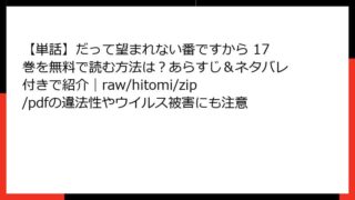 【単話】だって望まれない番ですから 【単話】だって望まれない番ですから 17巻を無料で読む方法は?あらすじ&ネタバレ付きで紹介|raw/hitomi/zip/pdfの違法性やウイルス被害にも注意 だって望まれない番ですから 17巻:運命の番を巡る壮大な転生ロマンスのクライマックスファンタジー界で話題沸騰中のコミカライズ作品『だって望まれない番ですから』。原作小説を基に、燦々サンゴによる美しい作画と一ノ瀬七喜の魅力的なストーリーが融合... 2025.10.05 【単話】だって望まれない番ですから少女マンガ