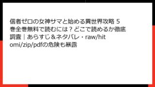 信者ゼロの女神サマと始める異世界攻略 信者ゼロの女神サマと始める異世界攻略 5巻全巻無料で読むには?どこで読めるか徹底調査|あらすじ&ネタバレ・raw/hitomi/zip/pdfの危険も暴露 信者ゼロの女神サマと始める異世界攻略 5巻:最弱の魔法使いが女神と共に頂点へ挑む!みなさん、こんにちは! 異世界ファンタジー好きのブロガー、ファンタジー探検家です。今日は、熱いリクエストにお応えして、人気コミック『信者ゼロの女神サマと始める... 2025.10.06 信者ゼロの女神サマと始める異世界攻略少年マンガ