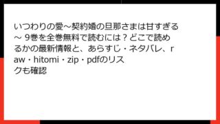 いつわりの愛~契約婚の旦那さまは甘すぎる~ いつわりの愛~契約婚の旦那さまは甘すぎる~ 9巻を全巻無料で読むには?どこで読めるかの最新情報と、あらすじ・ネタバレ、raw・hitomi・zip・pdfのリスクも確認 いつわりの愛~契約婚の旦那さまは甘すぎる~ 9巻の魅力に迫る! 詳細あらすじと読みどころを徹底解説こんにちは、漫画好きのブロガーです! 今日は、甘々ラブストーリーの傑作として人気沸騰中の『いつわりの愛~契約婚の旦那さまは甘すぎる~』の9巻に... 2025.10.06 いつわりの愛~契約婚の旦那さまは甘すぎる~女性マンガ
