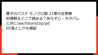 少年マンガ 黒子のバスケ モノクロ版 21巻の全巻無料情報&どこで読める?あらすじ・ネタバレと共にraw/hitomi/zip/pdfの落とし穴も検証 『黒子のバスケ モノクロ版 21巻』あらすじレビュー:ウインターカップの激闘が加速する一冊!こんにちは、バスケ漫画ファン必見のブログへようこそ! 今日は、藤巻忠俊先生の名作『黒子のバスケ』のモノクロ版21巻について、詳しくあらすじを振り返り... 2025.10.06 少年マンガ黒子のバスケ モノクロ版