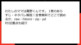 わたしのママは真野くんです。 わたしのママは真野くんです。 1巻のあらすじ・ネタバレ解説!全巻無料でどこで読めるか、raw・hitomi・zip・pdfの注意点も紹介 「わたしのママは真野くんです。」1巻 徹底レビュー:甘やかしラブコメの魅力にどっぷり浸かる!こんにちは、マンガ好きのブロガーです! 今日は、秋田書店エレガンスイブから刊行された三津キヨ先生の新鋭ラブコメ作品、『わたしのママは真野くんです。』... 2025.10.06 わたしのママは真野くんです。女性マンガ