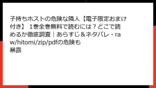 BLマンガ 子持ちホストの危険な隣人【電子限定おまけ付き】 1巻全巻無料で読むには?どこで読めるか徹底調査|あらすじ&ネタバレ・raw/hitomi/zip/pdfの危険も暴露 子持ちホストの危険な隣人【電子限定おまけ付き】 1巻:隠された家族の絆と禁断の恋の幕開けこんにちは、BL漫画大好きブロガーのです! 今日は、桃季さえ先生の傑作BLコミック『子持ちホストの危険な隣人【電子限定おまけ付き】』の1巻について、詳し... 2025.10.07 BLマンガ子持ちホストの危険な隣人【電子限定おまけ付き】