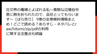 少女マンガ 社交界の毒婦とよばれる私~素敵な辺境伯令息に腕を折られたので、責任とってもらいます~[ばら売り] 9巻の全巻無料情報まとめ!どこで読める?あらすじ・ネタバレとraw/hitomi/zip/pdfの利用に関する注意点も網羅 社交界の毒婦とよばれる私~素敵な辺境伯令息に腕を折られたので、責任とってもらいます~[ばら売り] 9巻 詳細あらすじレビューこんにちは、マンガ好きのブロガーです! 今日は、悪役令嬢ファンタジーの傑作として人気を博している『社交界の毒婦とよば... 2025.10.08 少女マンガ社交界の毒婦とよばれる私~素敵な辺境伯令息に腕を折られたので、責任とってもらいます~[ばら売り]