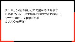 ダンジョン飯 ダンジョン飯 3巻はどこで読める?あらすじやネタバレ、全巻無料で読む方法も検証(rawやhitomi、zip/pdf利用のリスクも解説) ダンジョン飯 第3巻の魅力あふれるあらすじ! 地下3階層で繰り広げられる食と冒険の饗宴皆さん、こんにちは! ダンジョン飯のファンならずとも、モンスターを食材に変えてしまうユニークなグルメファンタジー漫画にハマること間違いなしですよね。今日は... 2025.10.10 ダンジョン飯青年マンガ