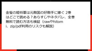 少女マンガ 金髪の姫将軍は元敵国の好敵手に嫁ぐ 2巻はどこで読める?あらすじやネタバレ、全巻無料で読む方法も検証(rawやhitomi、zip/pdf利用のリスクも解説) 金髪の姫将軍は元敵国の好敵手に嫁ぐ 2巻:政略結婚の甘く切ない深まりこんにちは、ファンタジー漫画好きの皆さん! 今日のレビューは、待望の人気シリーズ『金髪の姫将軍は元敵国の好敵手に嫁ぐ』2巻についてお届けします。この作品は、原作ライトノベル... 2025.10.11 少女マンガ金髪の姫将軍は元敵国の好敵手に嫁ぐ