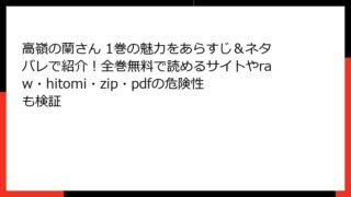 少女マンガ 高嶺の蘭さん 1巻の魅力をあらすじ&ネタバレで紹介!全巻無料で読めるサイトやraw・hitomi・zip・pdfの危険性も検証 『高嶺の蘭さん』1巻:ピュアな恋の花が咲き始める、高嶺の花と花屋の少年の物語こんにちは、マンガ好きのブロガーです! 今日は、餡蜜先生の人気少女マンガ『高嶺の蘭さん』1巻のあらすじを詳しくお届けします。この作品は、2017年に講談社『別冊フレ... 2025.10.11 少女マンガ高嶺の蘭さん
