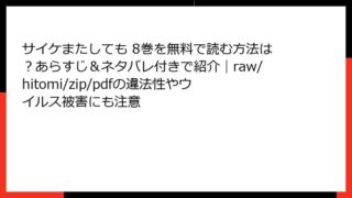 サイケまたしても サイケまたしても 8巻を無料で読む方法は?あらすじ&ネタバレ付きで紹介|raw/hitomi/zip/pdfの違法性やウイルス被害にも注意 『サイケまたしても』8巻:ネパール編の激闘が最高潮に! 詳細あらすじレビューこんにちは、漫画好きのブロガーです! 今日は、福地翼先生の傑作タイムリープ・バトル漫画『サイケまたしても』の8巻について、じっくりと深掘りしていきたいと思います。こ... 2025.10.12 サイケまたしても少年マンガ