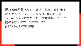 女性マンガ 溺れるほど愛されて、幸せになってみせますわ!アンソロジーコミック 18巻のあらすじ・ネタバレ完全ガイド!全巻無料でどこで読めるか?raw・hitomi・zip・pdfの落とし穴に注意 溺れるほど愛されて、幸せになってみせますわ!アンソロジーコミック 18巻 徹底レビュー:愛の渦巻く令嬢たちの運命みなさん、こんにちは! 今日のブログでは、女性向けマンガの人気シリーズ「溺れるほど愛されて、幸せになってみせますわ!アンソロジー... 2025.10.12 女性マンガ溺れるほど愛されて、幸せになってみせますわ!アンソロジーコミック