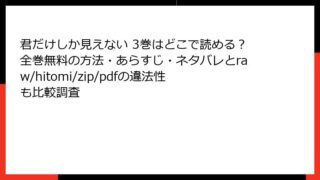 君だけしか見えない 君だけしか見えない 3巻はどこで読める?全巻無料の方法・あらすじ・ネタバレとraw/hitomi/zip/pdfの違法性も比較調査 『君だけしか見えない』3巻の魅力に迫る!切なく情熱的な純愛物語の深みを紐解くこんにちは、漫画好きのブロガーです。今日は、TL(ティーンズラブ)ジャンルで心を掴む人気作『君だけしか見えない』の3巻について、詳しくあらすじを振り返りながら、その... 2025.10.12 君だけしか見えない女性マンガ