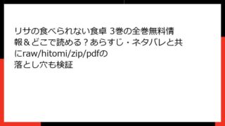 リサの食べられない食卓 リサの食べられない食卓 3巻の全巻無料情報&どこで読める?あらすじ・ネタバレと共にraw/hitomi/zip/pdfの落とし穴も検証 リサの食べられない食卓 3巻:美食の秘密が深まる、切ないクッキング・ラプソディーこんにちは、漫画好きの皆さん! 今日は、黒郷ほとり先生の傑作『リサの食べられない食卓』3巻について、たっぷりと語っていきたいと思います。この作品は、ただのグルメ... 2025.10.13 リサの食べられない食卓少年マンガ